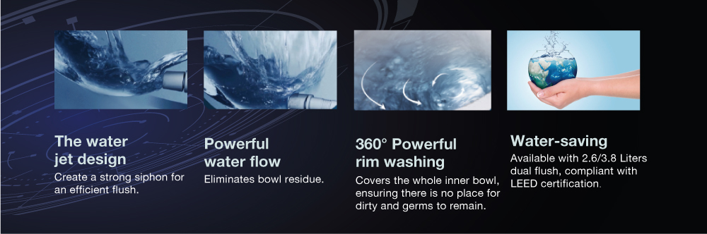 A one-click sanitizing button activates both electrolyzed water and UV light functions to clean the bowl and wand, ensuring greater hygiene.
